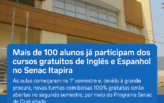 Senac Itapira abre novas turmas gratuitas em Inglês, Espanhol, TI e Moda
